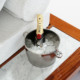 A side table featuring a beautiful top made out of the finest Italian marble with an ice bucket holder for chilled beverages.