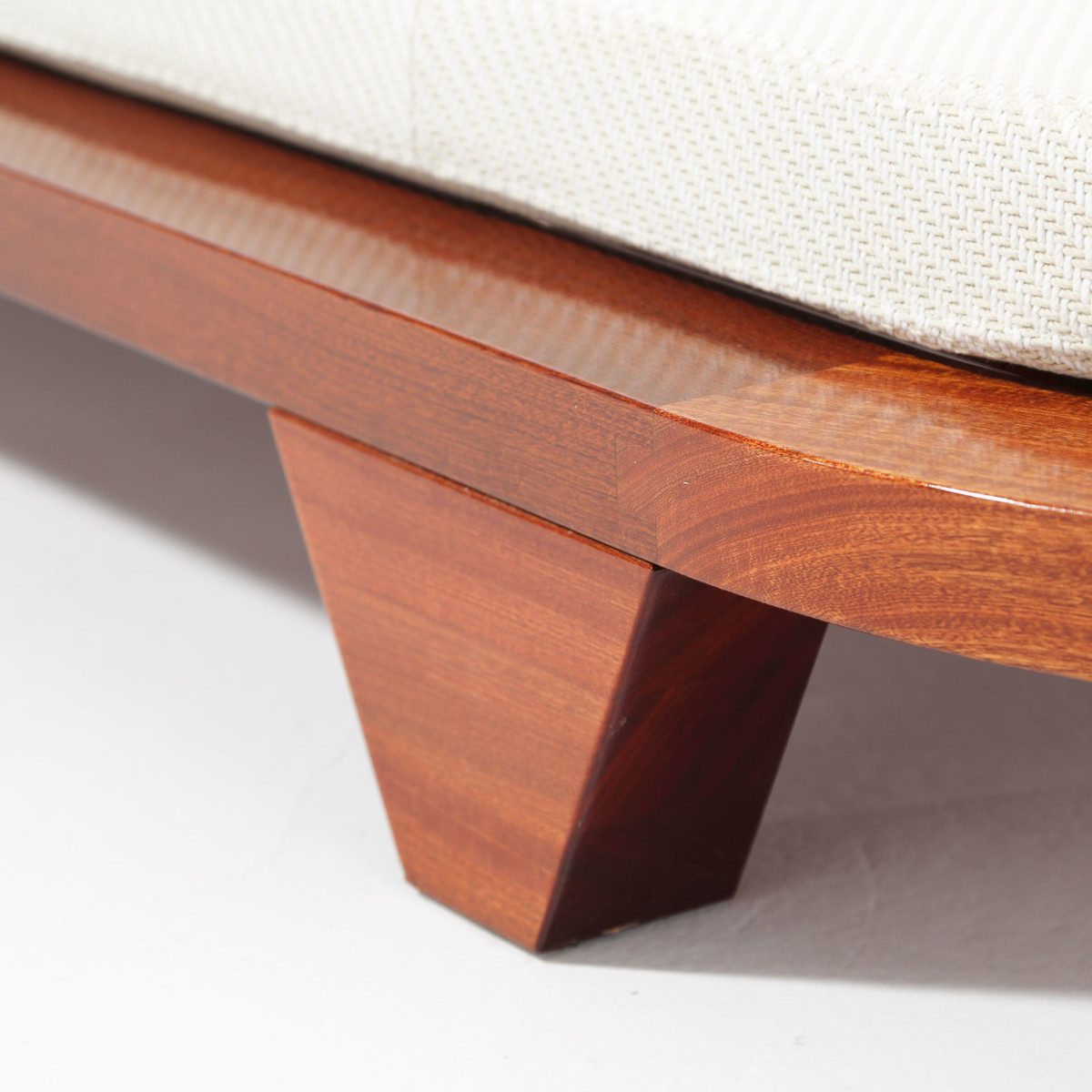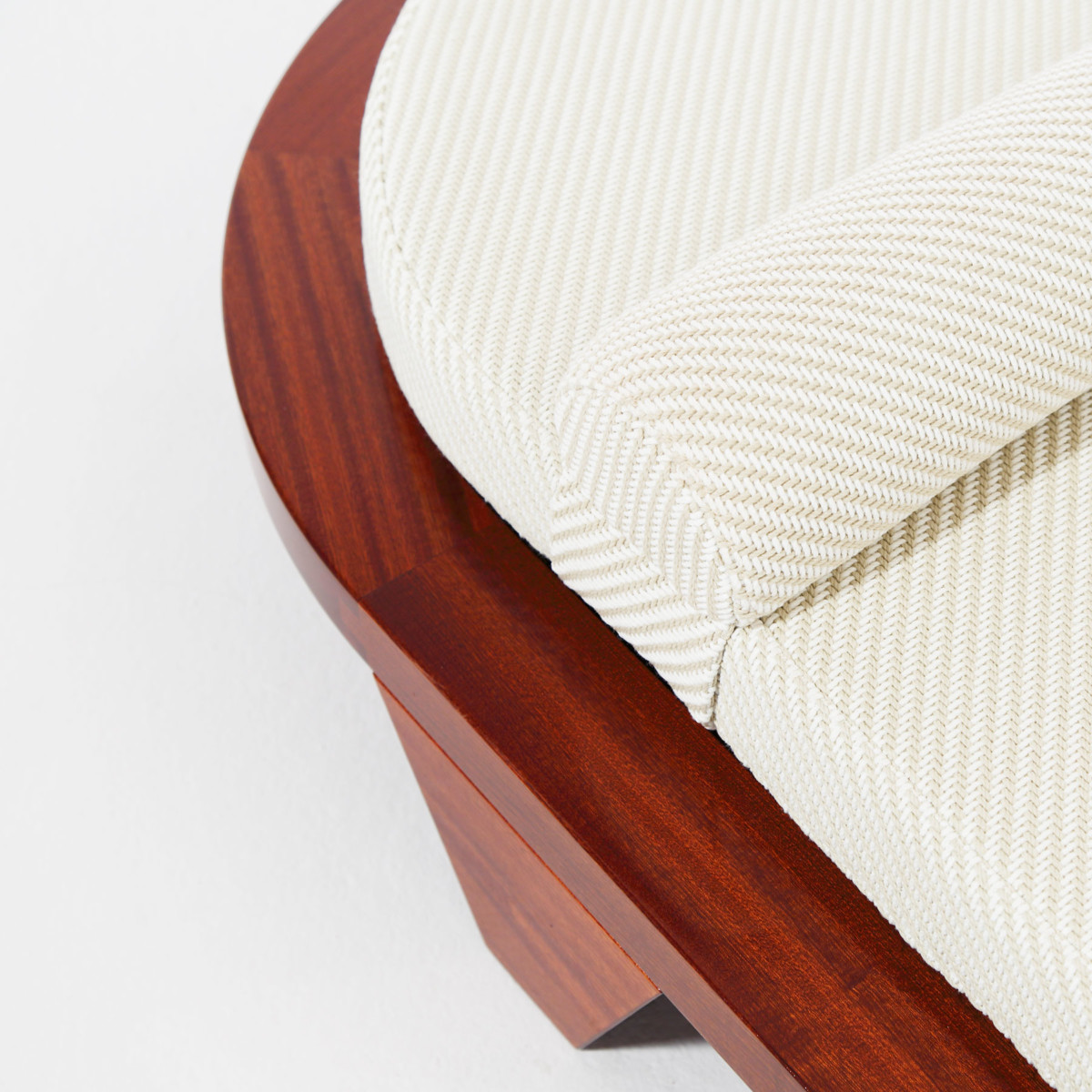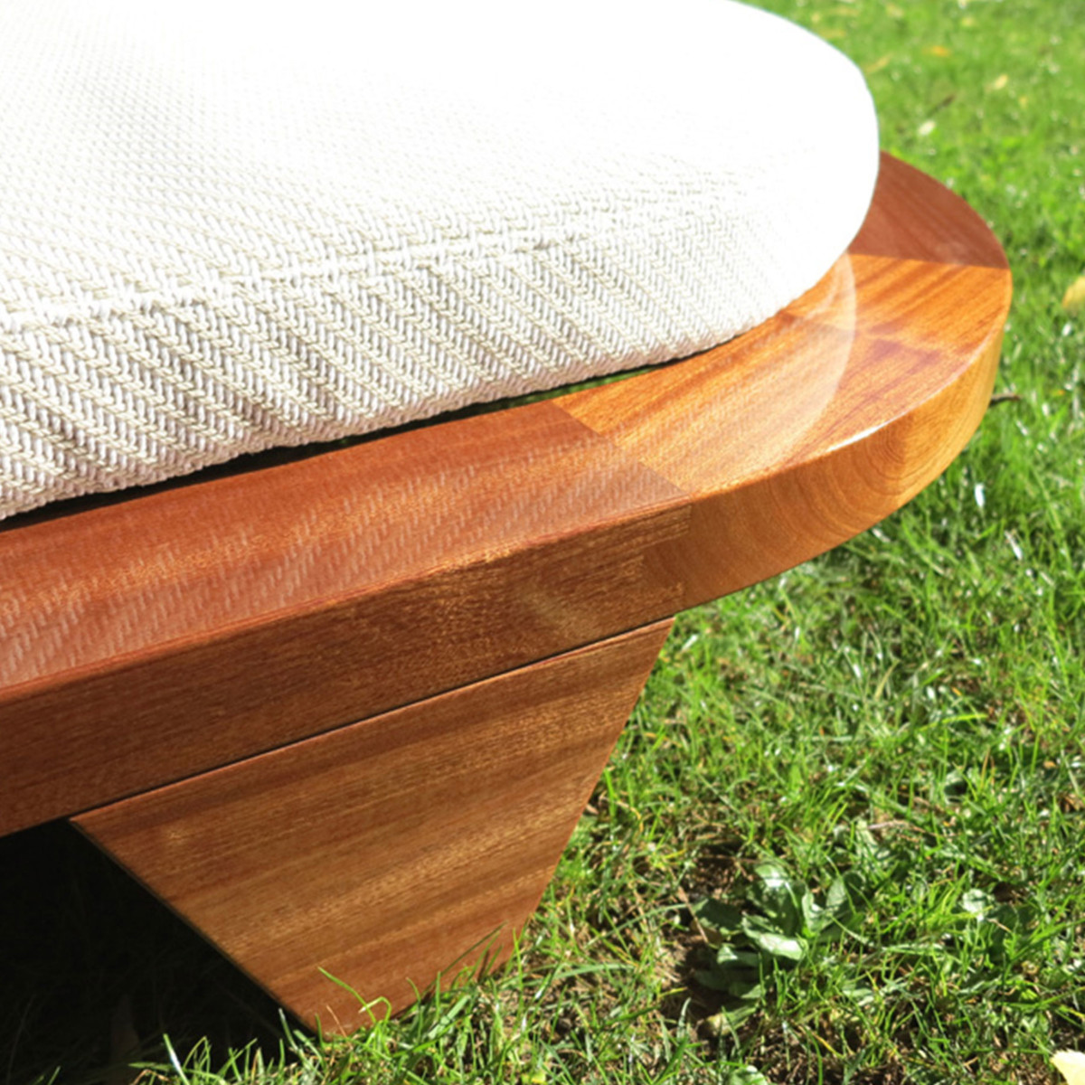 The world’s first sunbed with no corners featuring a beautifully cut and assembled curved edge wide-body frame crafted from the finest mahogany wood.