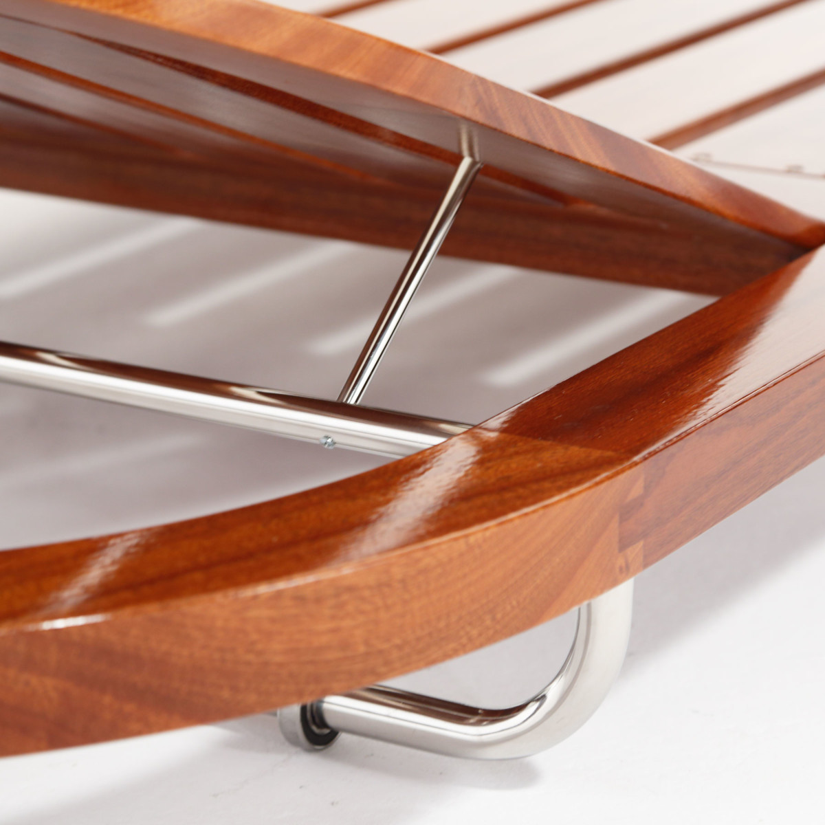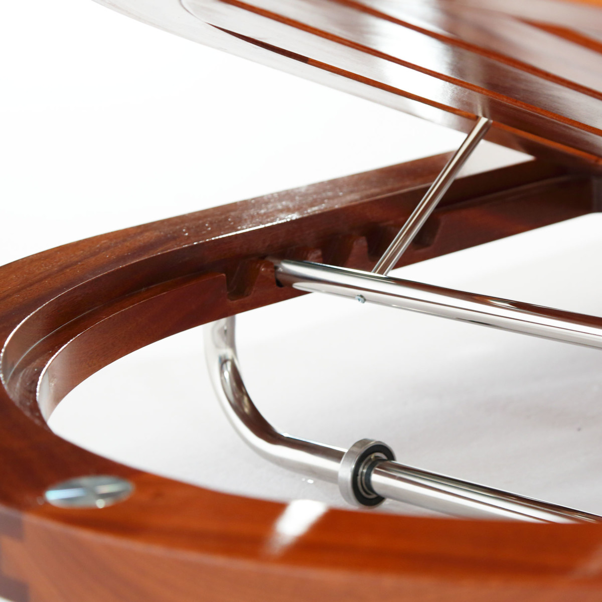 The world’s first sunbed with no corners featuring a beautifully cut and assembled curved edge wide-body frame crafted from the finest mahogany wood.
