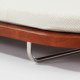 Its curved wide-body frame in mahogany hardwood puts it right at home beside the flowing lines of infinity pools. Discrete, integrated 316 stainless steel wheels mean it moves around smoothly, while the careful positioning of the central beams guarantees a soft and soothing sensation. Add to that a dry-feel foam mattress and pillow in a choice of exclusive fabrics, which are non-slip thanks to the clip-on system, for ultimate relaxation.